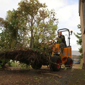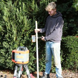 Dit alles start met een ontwerptekening, gemaakt door de uitvoerder (met jaren ervaring als hovenier) die jullie in grote lijnen aanstuurt. Dan ga je gezamenlijk aan de slag en start je met het team met het opbreken van de bestaande situatie. Jullie scheiden het afval en voeren dit af, zo nodig in samenwerking met een vrachtwagen. Vanaf dat moment kan er weer worden opgebouwd! Dit begint natuurlijk met het lezen van de tekening, grondwerk, het aanbrengen van de juiste ondergrond en het uitzetten van de nieuwe situatie met behulp van een laser.