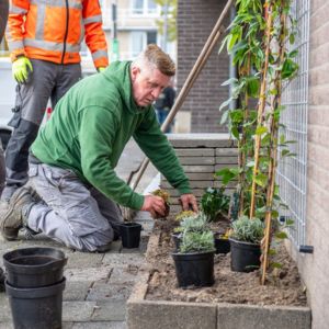 En dan.. aan de slag! Het leukste deel van het project. Belangrijk is dat je zelfstandig aan de slag kan gaan met straatwerk en/of het bouwen van houten constructies. In samenwerking met je collega (leerling)hovenier maak je er een mooi eind resultaat van.